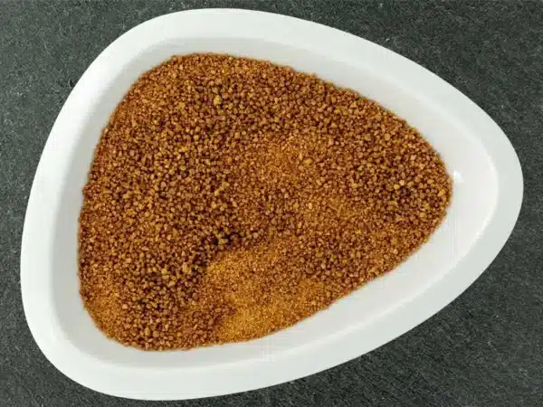 Um ihn später leichter zu verarbeiten, wird er pulverisiert und man kann ihn einfach in Getränke, zum Backen, auf Porridge, Pfannkuchen, Milchreis,…. genießen.