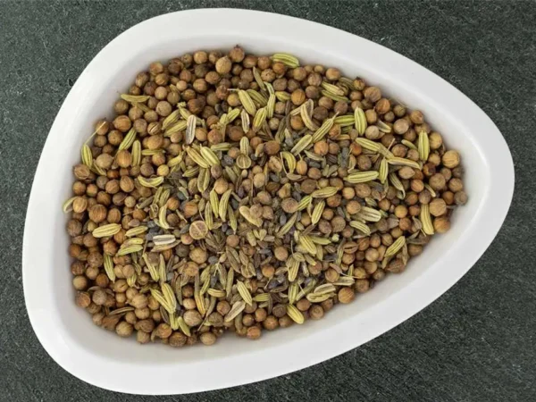 Zutaten: Koriandersaat, Anis, Fenchel, Kümmel, Schwarzkümmel, Bockshornkleesaat, Tellicherry Pfeffer